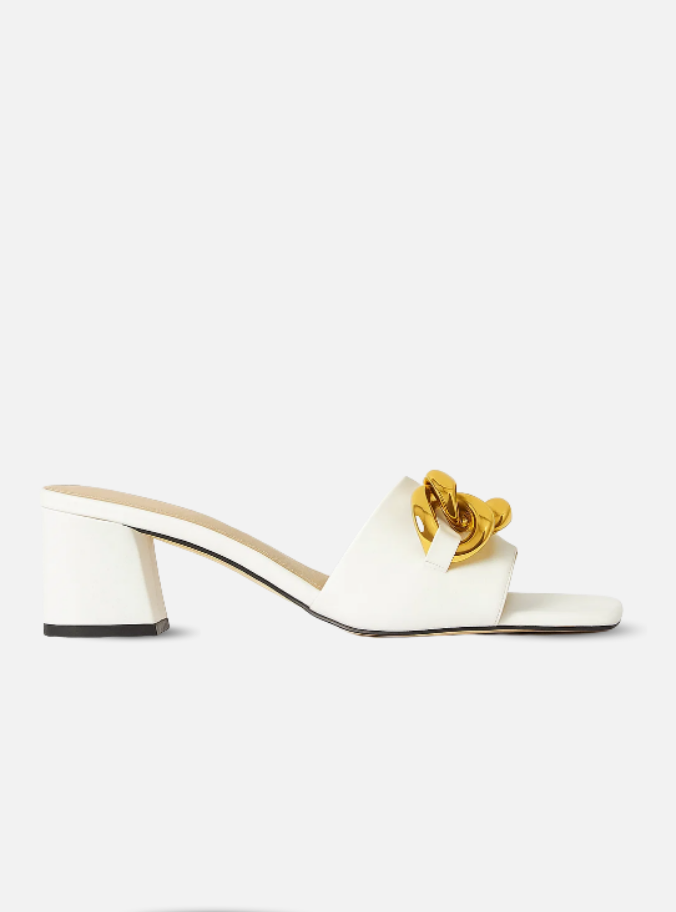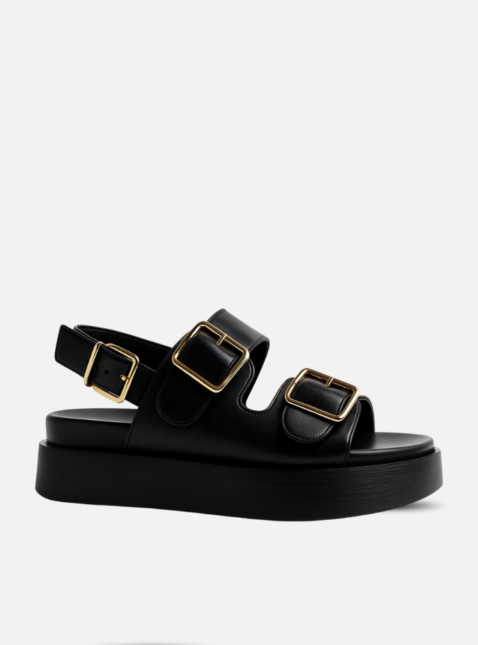 Sandálias de couro texturizado com salto quadrado e tira frontal